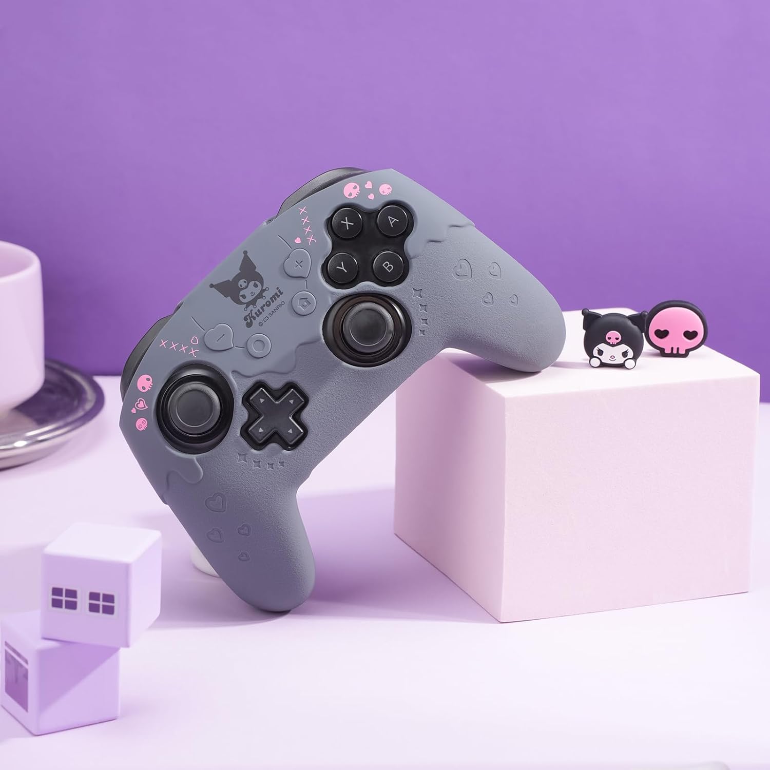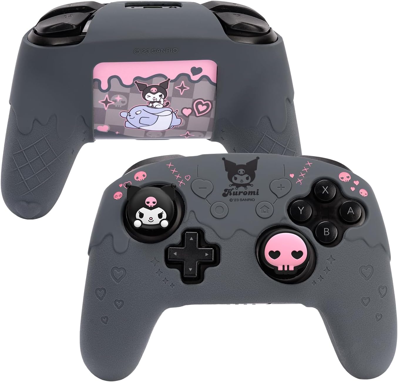 Transform your Switch Pro Controller with this adorable and functional Skin Set. Crafted from soft silicone, this protective cover offers a snug fit and anti-slip grip for enhanced gaming performance. The set includes 2 Thumb Grip Caps for improved control and 1 Sticker to add a touch of personalization to your controller. Keep your Switch Pro Controller safe from scratches and wear while adding a cute and stylish look with this Skin Set. Elevate your gaming experience today!